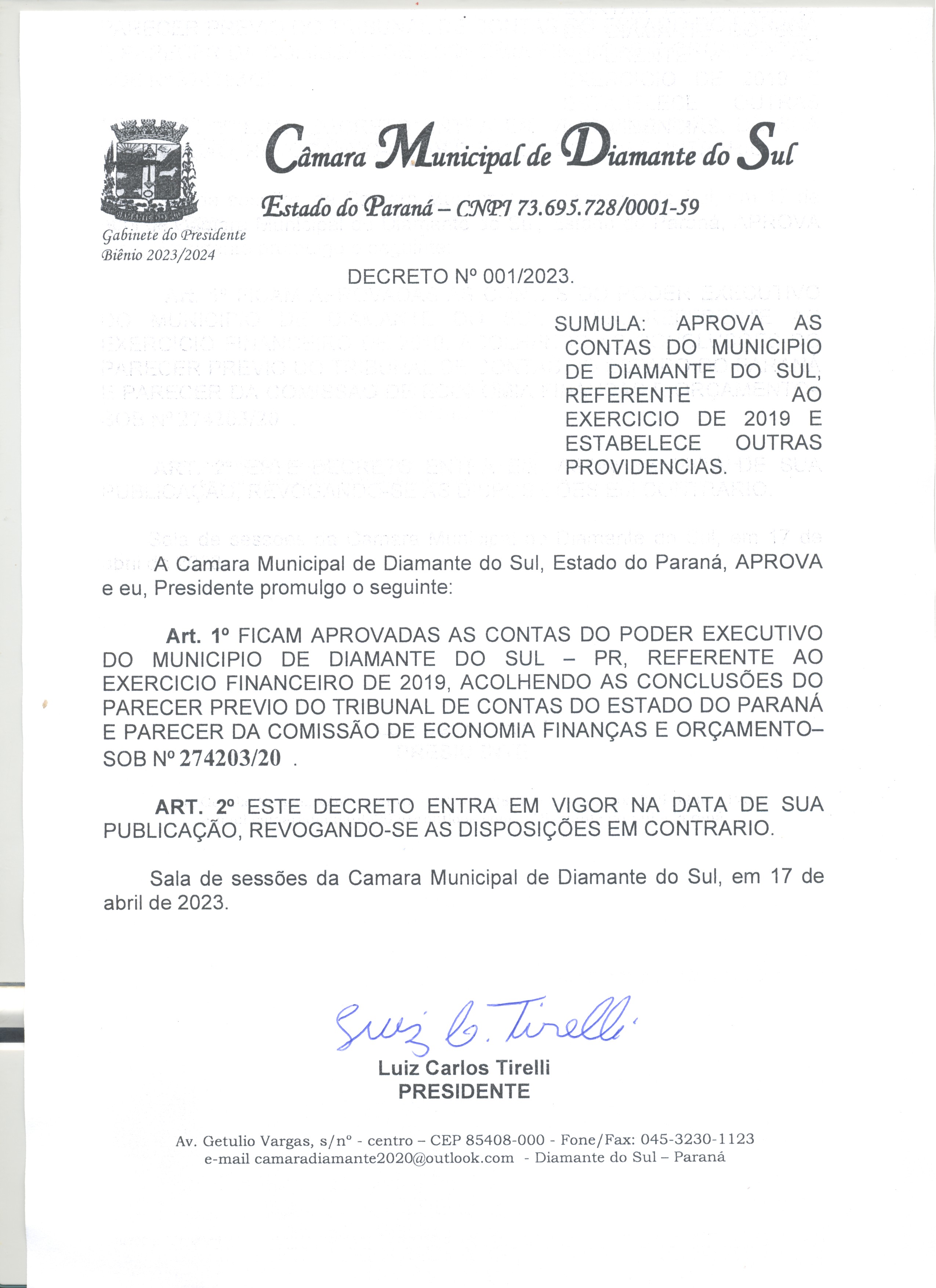 Câmara Municipal de Diamante do Sul/PR